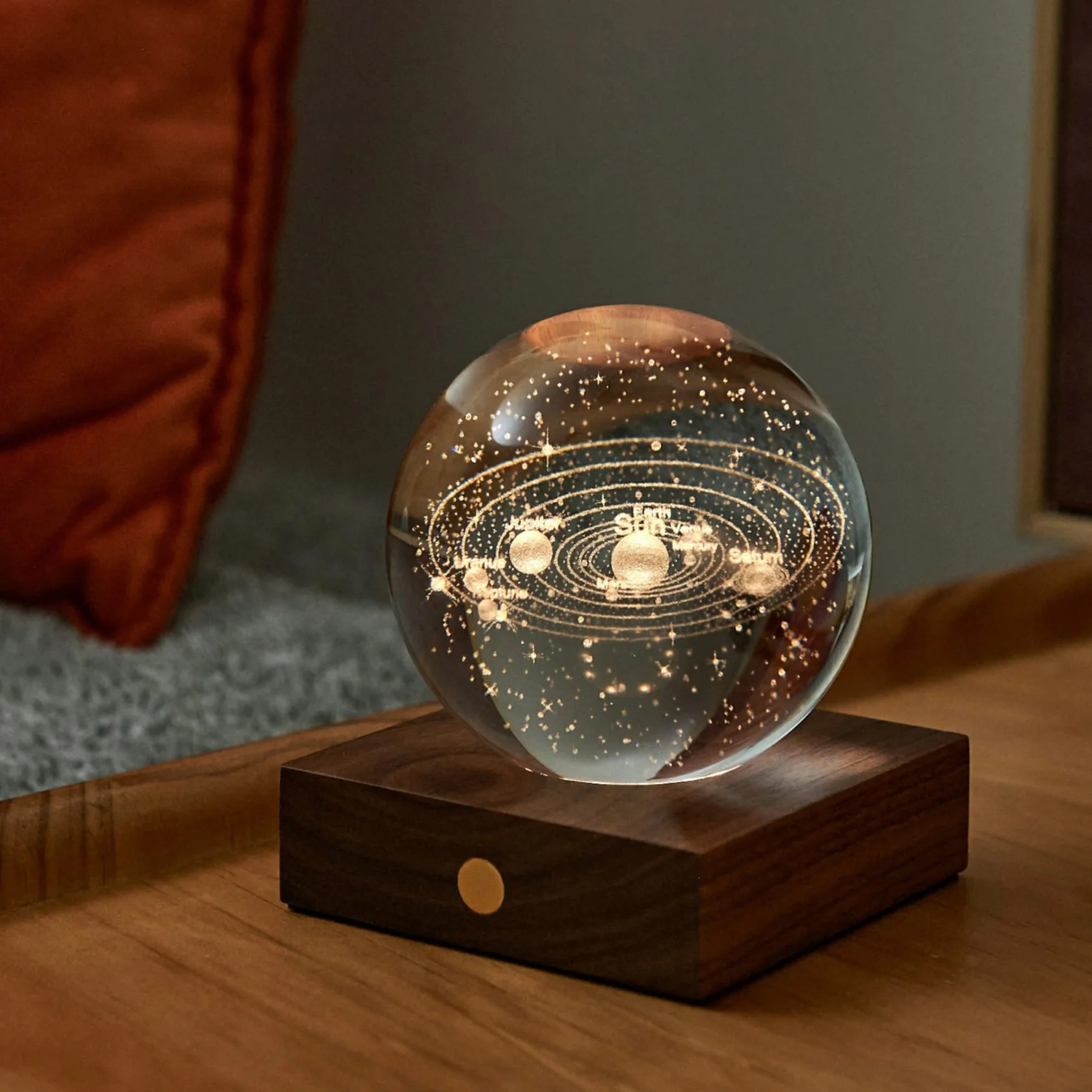 • Wyjątkowy design: Kryształowa kula z trójwymiarowym grawerunkiem Układu Słonecznego przyciąga wzrok i tworzy unikalną atmosferę w pomieszczeniu.