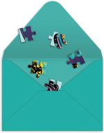•  Zabawny i innowacyjny format kartki okolicznościowej – na odwrocie obrazka jest miejsce na życzenia.