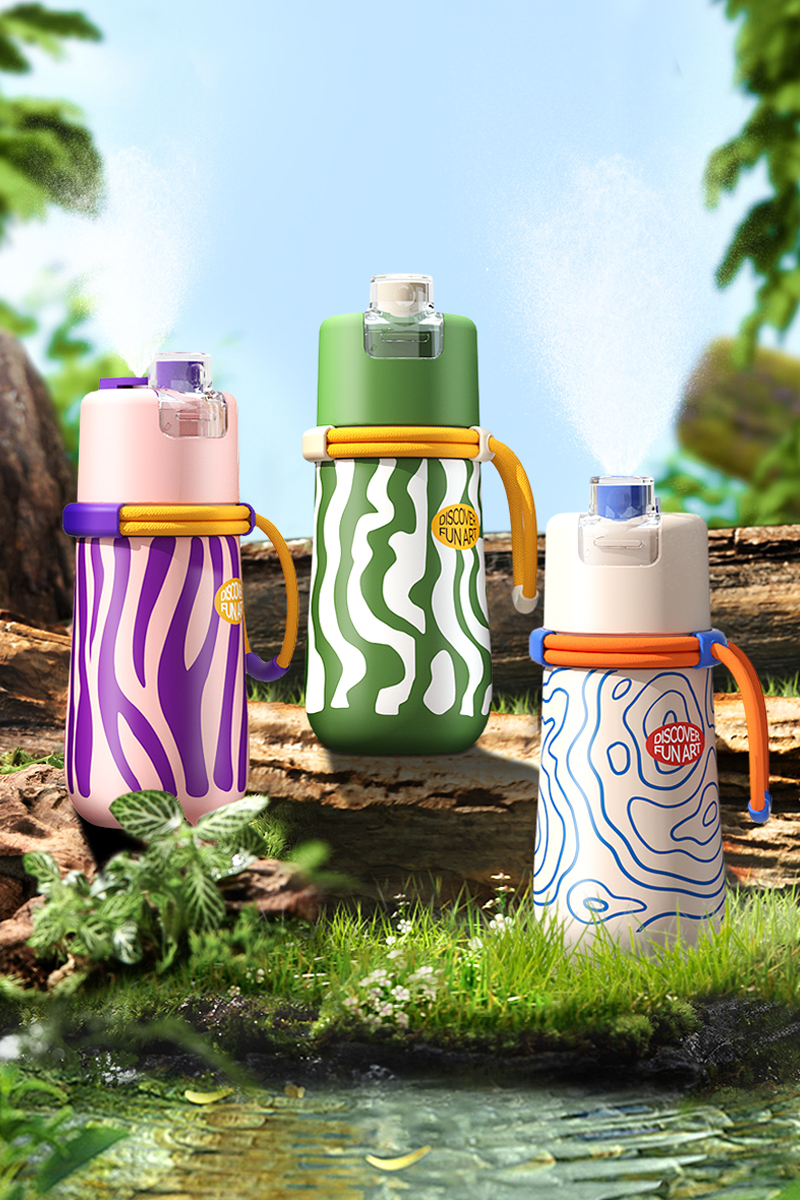 Czasami są takie temperatury, że zamiast wypić szklankę wody, mamy ochotę ją na siebie wylać. Uwierzcie nam – dużo prościej jest jednak spryskać się wilgotną mgiełką. Orzeźwienie jest megaprzyjemne, a przy okazji nie jesteśmy od razu cali przemoczeni. Chcemy, by nasze dzieci odpowiednio się nawadniały, szczególnie latem. Bidon ze spryskiwaczem możemy zawsze mieć przy sobie i uzupełniać go w dowolnym miejscu. Kolorowe wzory przyciągają zarówno najmłodszych jak i dorosłych, a używanie spryskiwacza przyniesie każdemu mnóstwo zabawy.