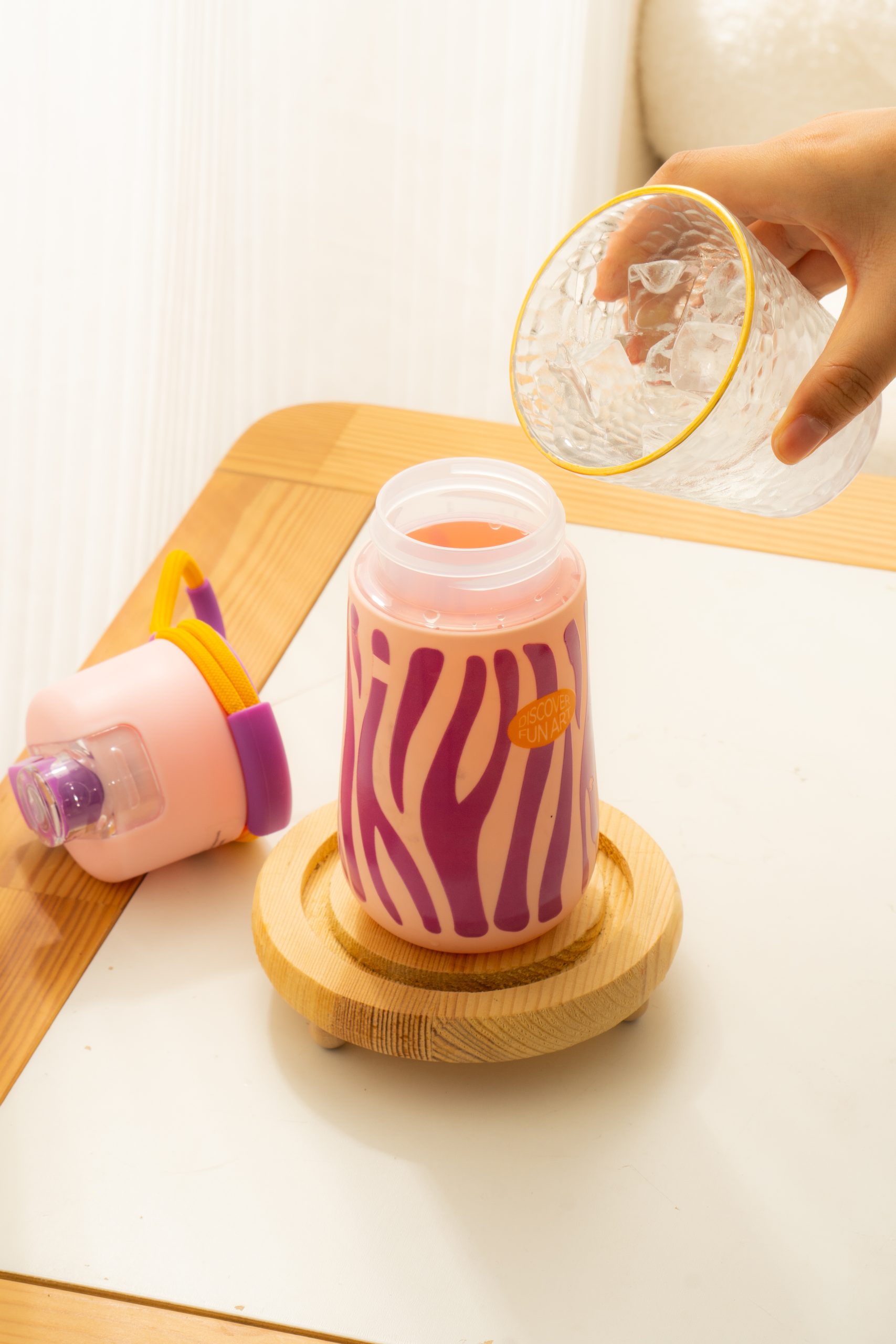 • Ma kolorowy gumowy pokrowiec, który można zdjąć, aby umyć bidon. Pssttt… a butelkę pod spodem możecie ozdobić naszymi pisakami akrylowymi (łatwo zmywalnymi!) – kreatywność to coś, co kochamy!