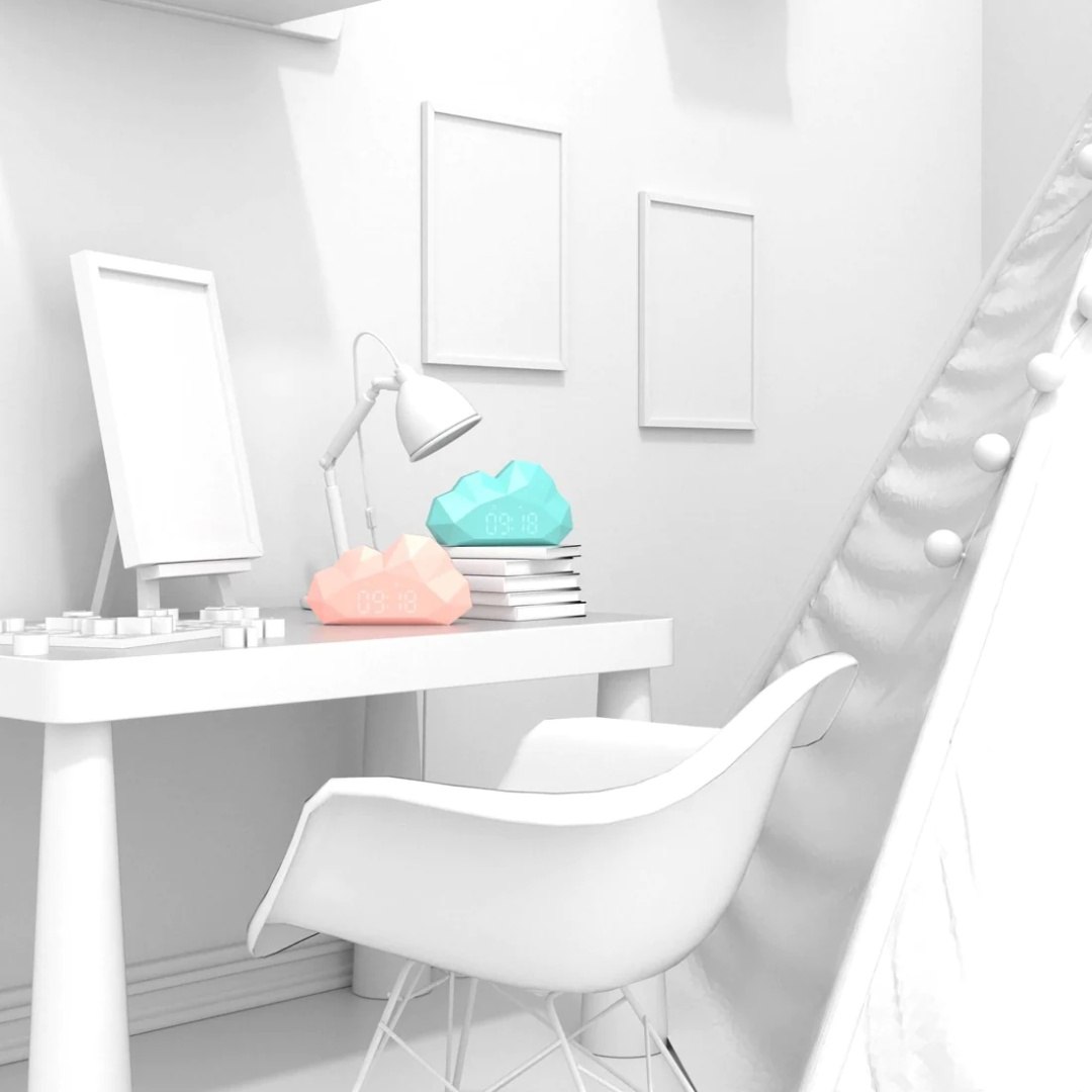 Budzik w kształcie chmurki oferuje coś więcej niż tylko ładną dekorację. To stylowy i innowacyjny gadżet idealny do dziecięcego pokoju (i nie tylko).
