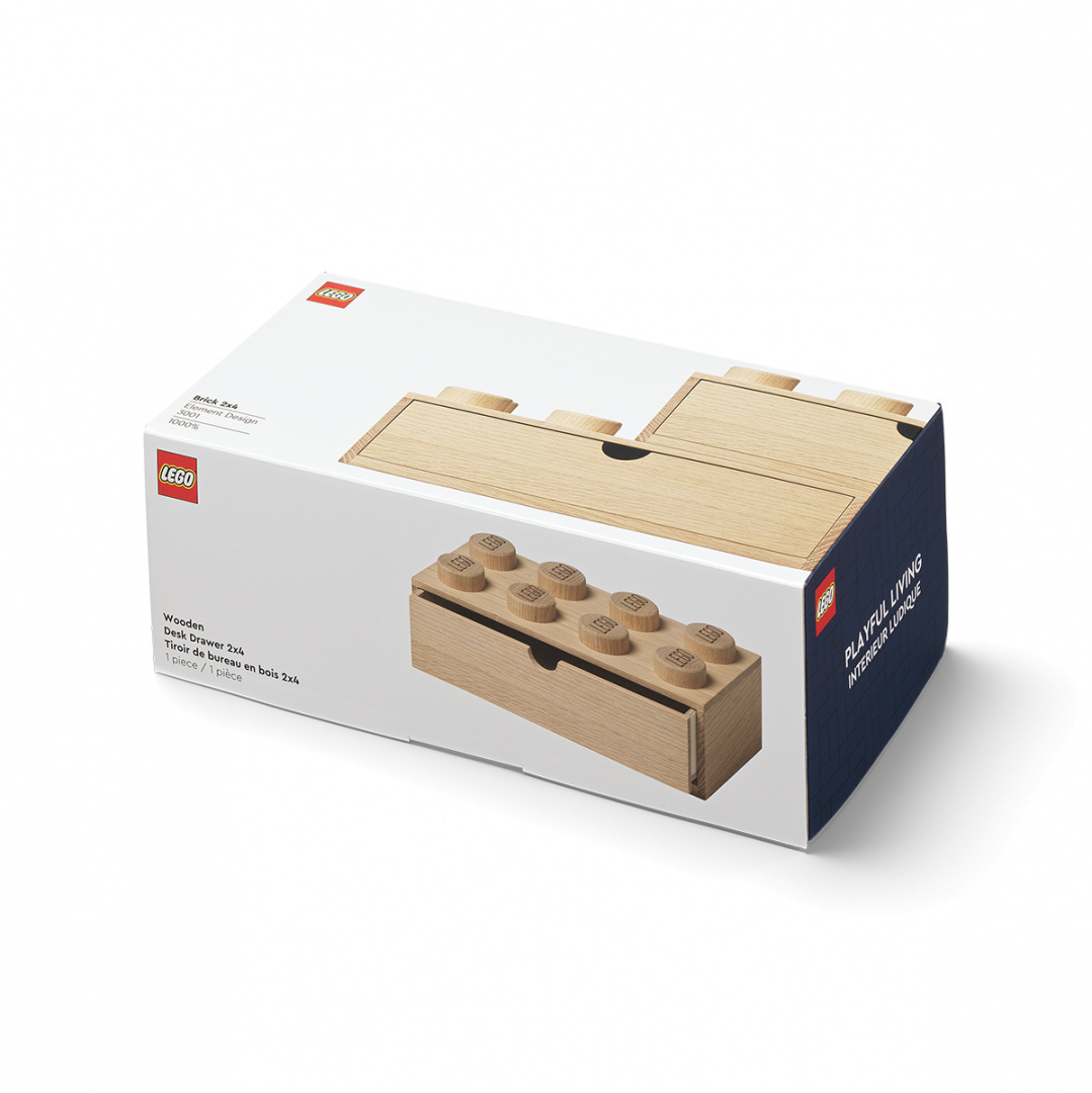 Drewniana szuflada na biurko to wyjątkowy gadżet, który wywoła uśmiech na twarzy nawet najbardziej wymagających  fanów LEGO®. Stworzona na wzór klocka 2×4 wyposażona w wyjmowaną szufladę pomieści różności: od mniejszych klocków, zabawek, artykułów biurowych, po przybory toaletowe.