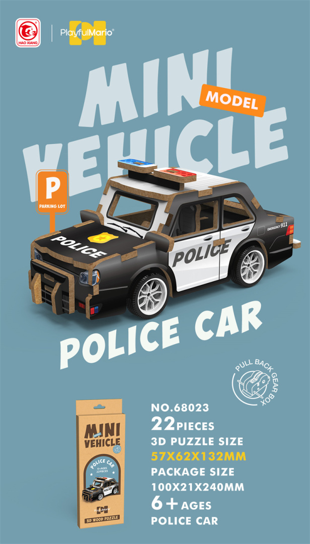 Drewniane mini Puzzle 3D z napędem Radiowóz