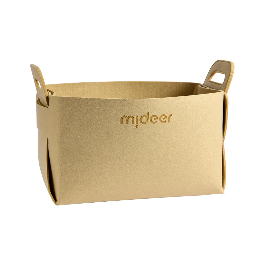 Filcowy kosz do przechowywania wszelakich dziecięcych skarbów pomoże zachować porządek w każdym, nawet najbardziej niezorganizowanym wnętrzu. Dzięki swojemu neutralnemu designowi pasuje do niemal każdego wystroju. Chowając do niego zabawki razem z dzieckiem, nauczymy naszą pociechę robienia porządku, pokazując, że ogarnięty pokój to ładny pokój!