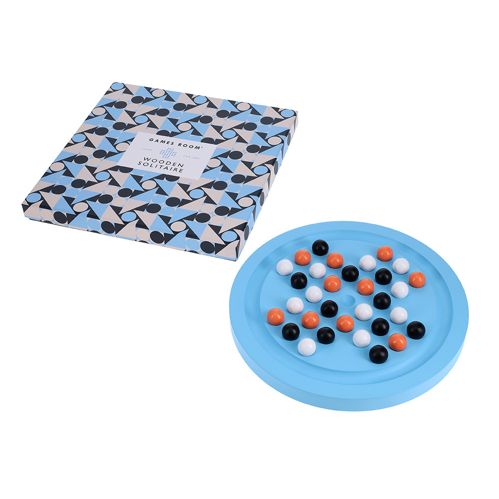 To piękne pudełko zawiera elegancką drewnianą planszę i 33 kolorowe kulki do gry w pasjansa – klasyczną strategiczną grę logiczną.