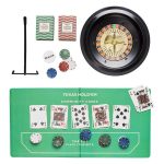 Zorganizuj wieczór dla koneserów hazardu z zestawem Casino Night od Games Room! Sprawdź swoje szanse, grając w klasyczne gry kasynowe, takie jak Pontoon, Texas Hold’em Poker i ruletka. Sprawdź, komu poszczęsci się tym razem, a kto będzie wielkim przegranym. Zestaw zawiera koło ruletki, 200 żetonów do pokera, dwie talie kart do gry, żeton krupiera, planszę do gry, 2 kulki do ruletki i 1 pałeczkę krupierską. Całość zapakowana w pudełko z geometrycznym wzorem.