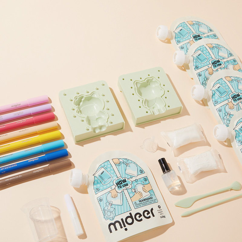 Dlatego Mideer przygotował dodatkowy gips w proszku w formie uzupełnienia – tak, aby każda nowa laleczka mogła przejść z wyobraźni prosto do formy.