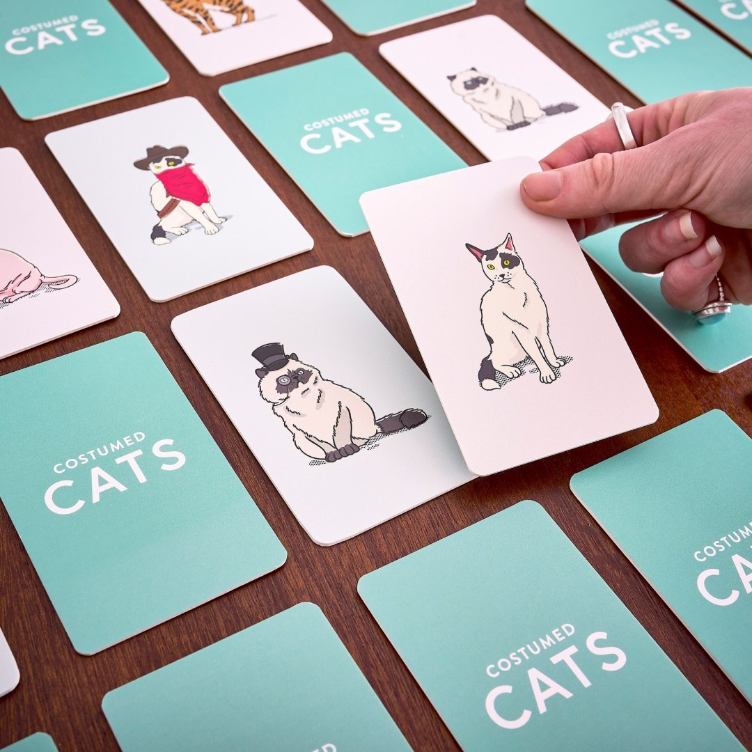 Gracze na zmianę wybierają dwie karty do odkrycia. Jeśli kot wygląda znajomo, dopasuj go do jego przebranego odpowiednika. Gracz z największą liczbą dopasowań wygrywa!