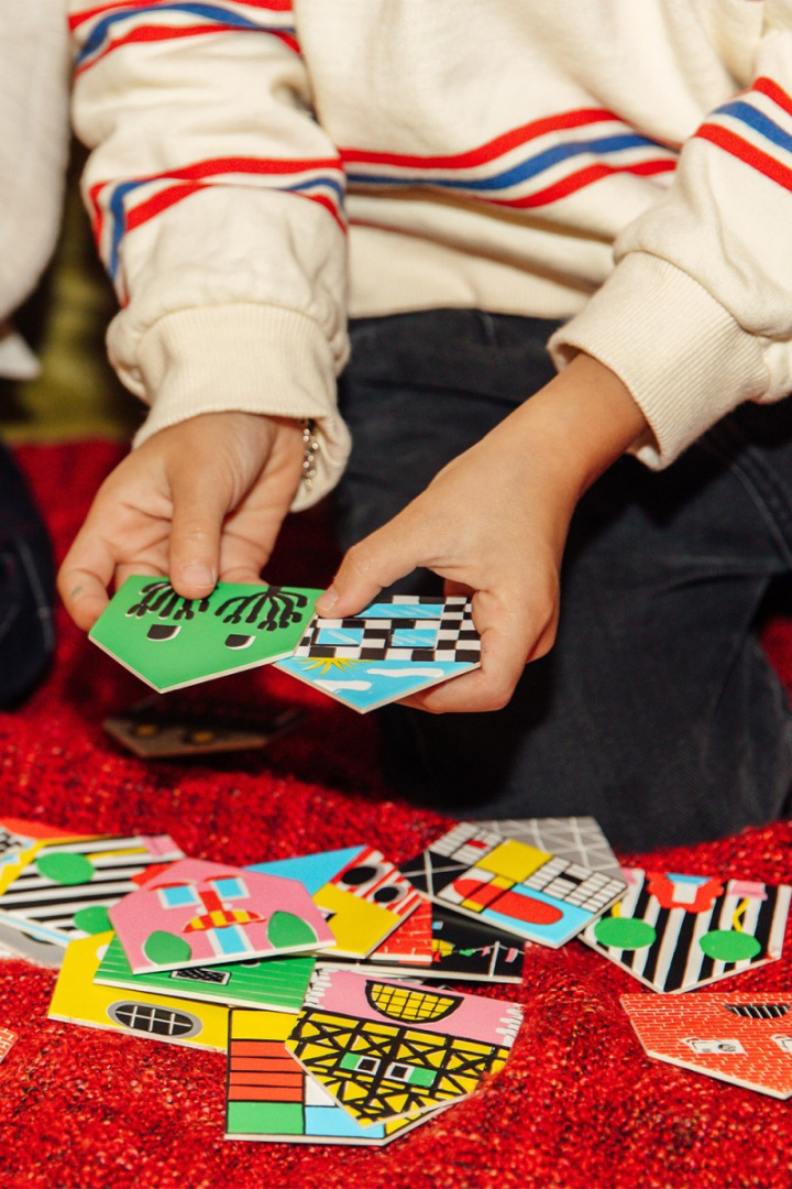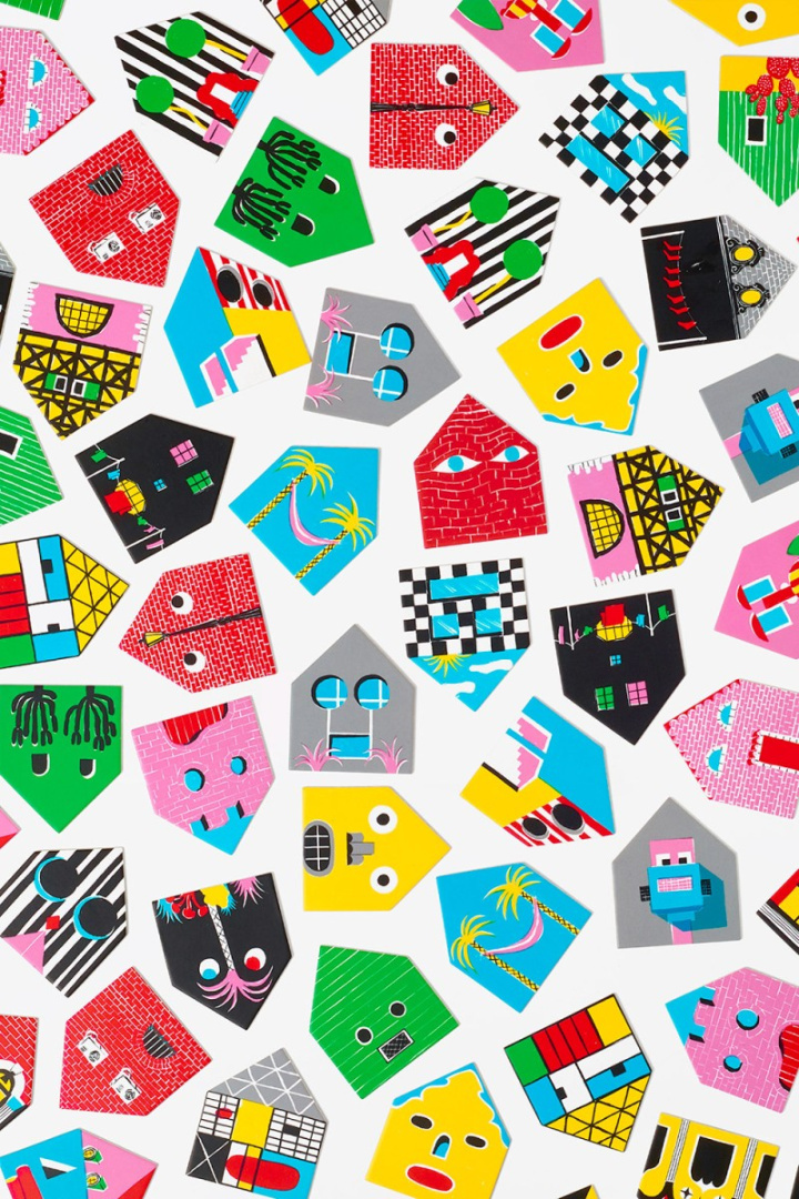 Karty zostały zaprojektowane w zabawny i zaskakujący sposób. To kolorowe budynki, które skrywają twarze pokazujące różne emocje ( to tak jak w świecie realnym, budynki skrywają emocje i twarze ich lokatorów).