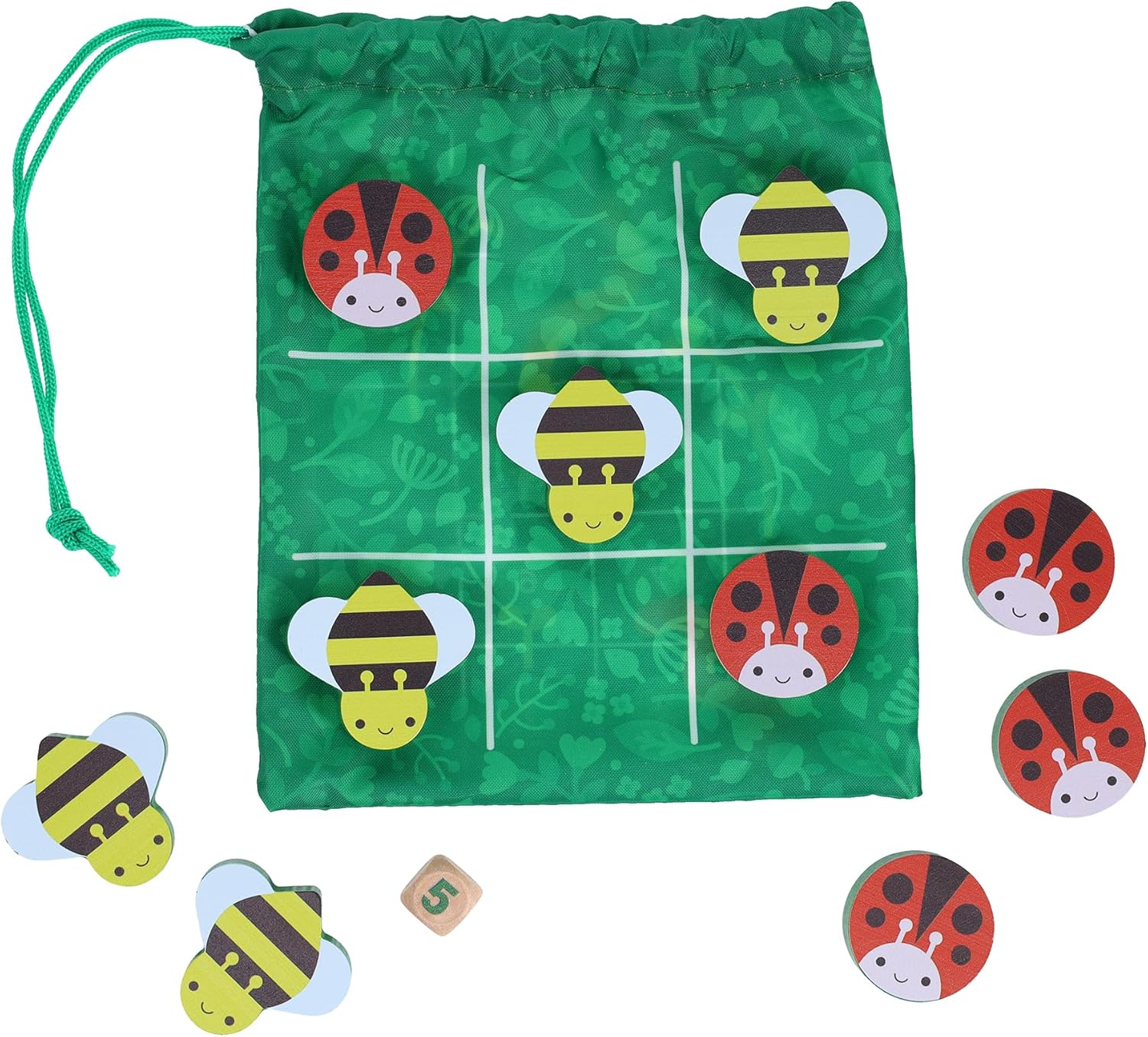 DWA KLASYCZNE GRY W JEDNYM ZESTAWIE – Przyjaciele ogrodowi spodobają się wszystkim małym fanom natury. Drewniane elementy i nadruki na torbie do przechowywania sprawiają, że gra w Kółko i Krzyżyk lub Węże i Drabiny jest niezwykle łatwa w dowolnym miejscu!