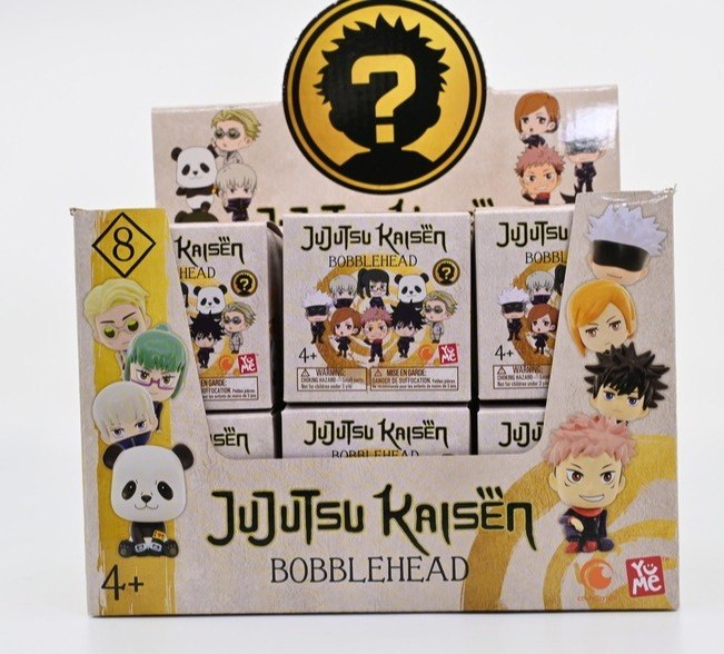 Z jednego z najbardziej lubianych anime wszechczasów „Jujutsu Kaisen”, ekspozytor z 12 pudełkami, z których każde zawiera losowo dobrane mini Bobble Head. Każda z figurek mierzy około 2,5 cala/6,3 cm. Do zebrania jest 8 postaci.