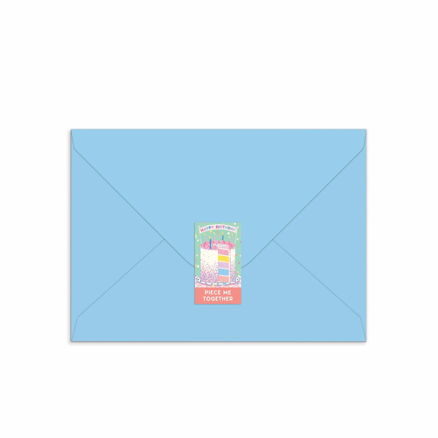 Urodzinowe życzenia jeszcze nigdy nie były tak zaskakujące! Kartka urodzinowa – Tort Konfetti od Galison to kreatywne połączenie kartki okolicznościowej i mini puzzli. Ilustracja przedstawia apetyczny tort ozdobiony kolorowym konfetti, a całość składa się z 60 elementów. Puzzle są wstępnie ułożone – wystarczy napisać życzenia na odwrocie, rozdzielić kawałki, zapakować do koperty i wysłać. Odbiorca, zanim odczyta wiadomość, będzie musiał ją ułożyć samodzielnie.