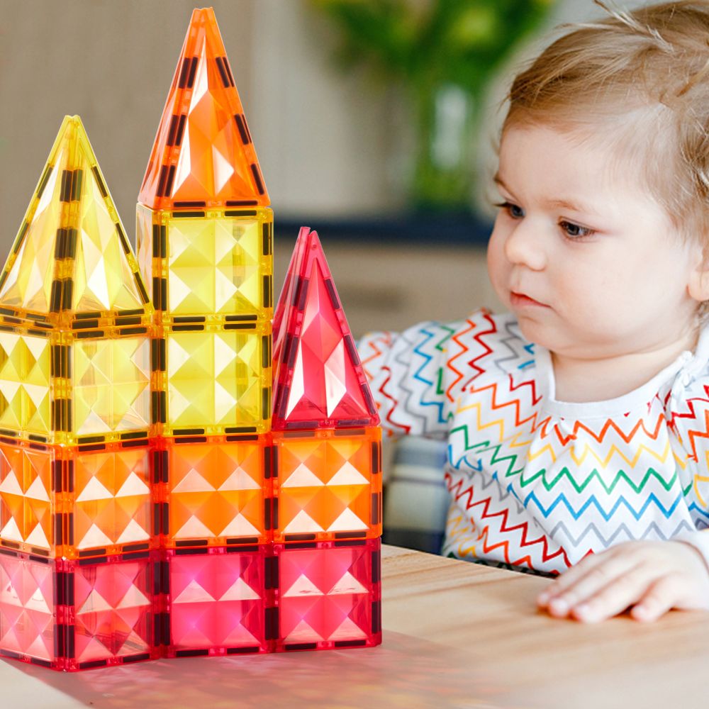 Klocki magnetyczne to prawdziwe wyzwanie dla każdej małej inżynierki i każdego małego inżyniera. Dzięki tworzeniu konstrukcji może rozwijać swoją wyobraźnię przestrzenną, podstawowe pojęcie o zasadach działania fizyki oraz koordynację ręka-oko. Nie potrzebuje do tego kleju ani innych dodatkowych narzędzi! Silny magnes sprawia, że elementy trzymają się ze sobą, co ułatwia tworzenie bardziej zaawansowanych projektów. Nie rozpadną się nieproszone! Do zestawu dołączona jest instrukcja, w której zaprezentowano zbiór przykładowych konstrukcji – od bardzo łatwych do zaawansowanych. Pomagając dziecku budować różnorodne struktury, wzmacniamy jego odwagę do tworzenia własnych kształtów. Nic tak nie zaskakuje rodzica jak ogrom kreatywności jego pociechy.