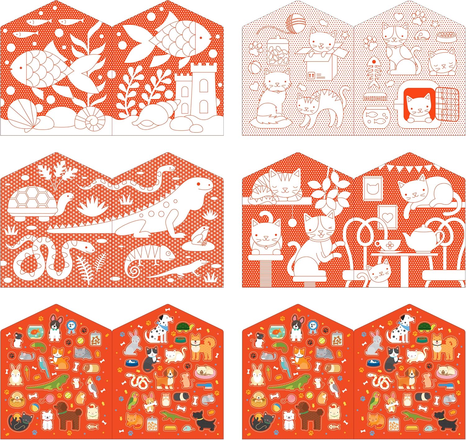 Wybierz się w niezwykłą podróż do krainy zwierzaków domowych! Pokoloruj radosne sceny z przyjaznymi, zwierzątkami domowymi, począwszy od rybek, przez żółwie, na psach i kotach kończąc. Następnie udekoruj je ponad 100 naklejkami o tematyce fauny.