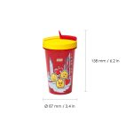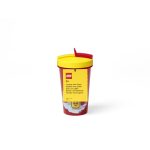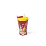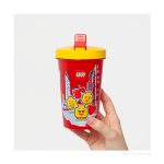 Kubek LEGO® ze słomką to świetny towarzysz dłuższych i krótszych podróży. Idealny do szkoły lub na wycieczkę. Jest pojemny i bardzo sprytny, a mechanizm chowającej się silikonowej słomki ucieszy każdego miłośnika sprytnych gadżetów. Kiedy kończysz picie (jednym ruchem ręki) przesuń przypominający klocek klips i zamknij swój kubek. Zamknięty kubek jest szczelny i gotowy do drogi! Dzięki dużemu odkręcanemu wieczku, w gorące letnie dni bez problemu wypełnisz go kostkami lodu. Kubek wykonany z półprzezroczystego kolorowego materiału jest ozdobiony atrakcyjnymi grafikami z postaciami z klasycznego świata LEGO®.