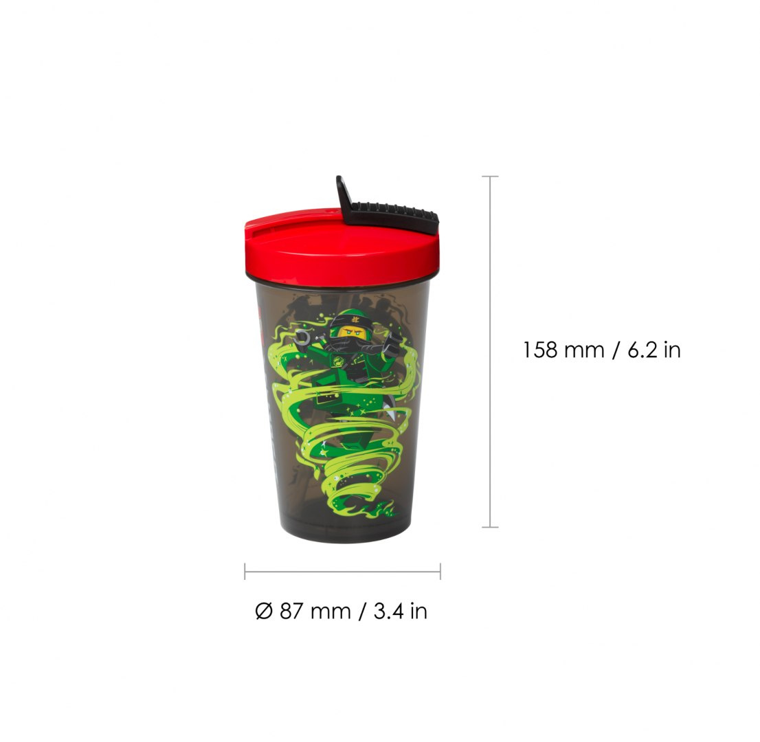 Kubek LEGO® ze słomką to świetny towarzysz dłuższych i krótszych podróży. Idealny do szkoły lub na wycieczkę. Jest pojemny i bardzo sprytny, a mechanizm chowającej się silikonowej słomki ucieszy każdego miłośnika sprytnych gadżetów. Kiedy kończysz picie (jednym ruchem ręki) przesuń przypominający klocek klips i zamknij swój kubek. Zamknięty kubek jest szczelny i gotowy do drogi! Dzięki dużemu odkręcanemu wieczku, w gorące letnie dni bez problemu wypełnisz go kostkami lodu. Kubek wykonany z półprzezroczystego kolorowego materiału jest ozdobiony atrakcyjnymi grafikami z postaciami z klasycznego świata LEGO®.
