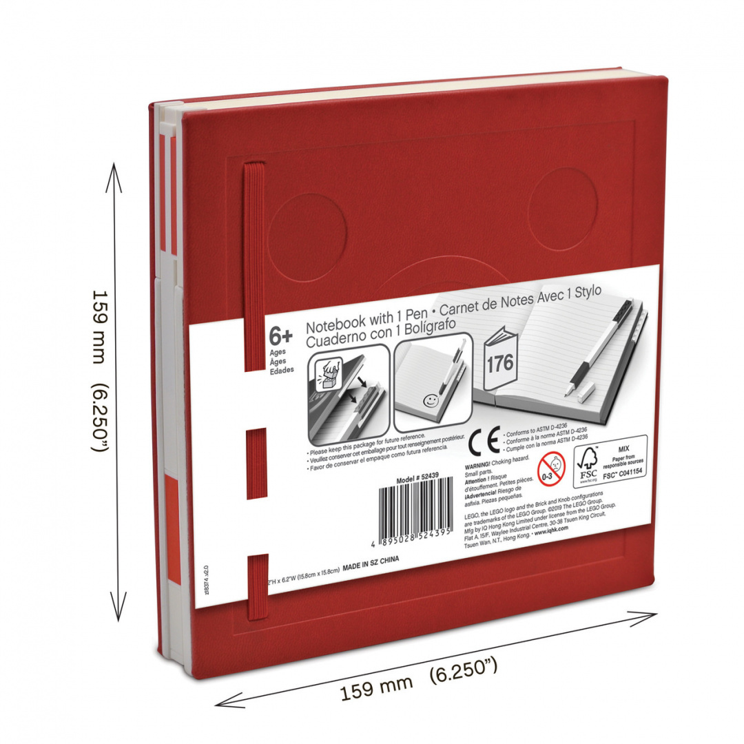 Kwadratowy notatnik LEGO® z długopisem (Czerwony)