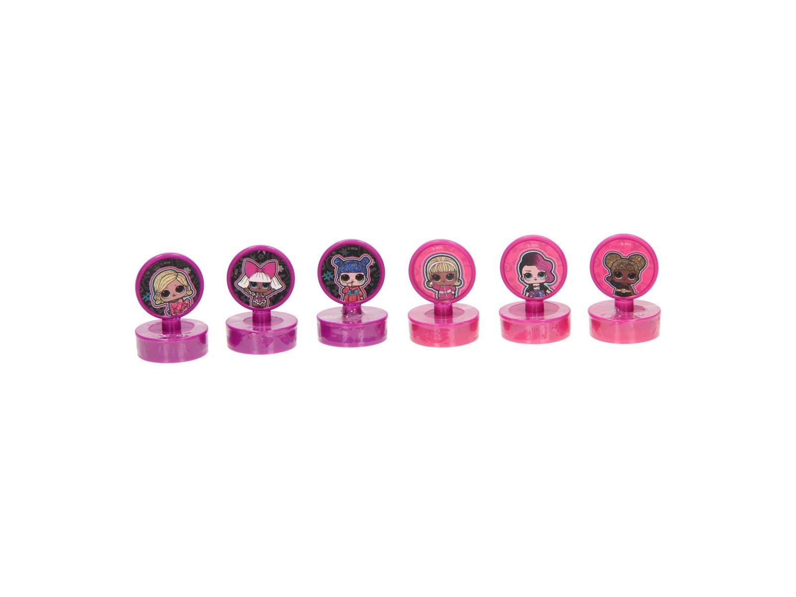 • Na każdym stempelku umieszczona nakładka z motywem przedstawiającym ulubioną laleczkę LOL.