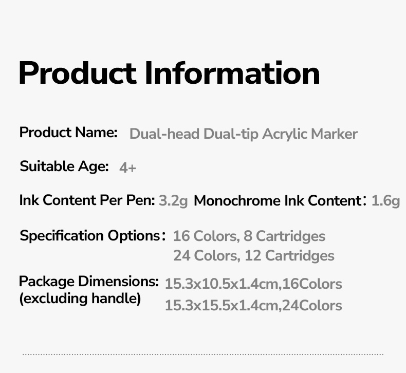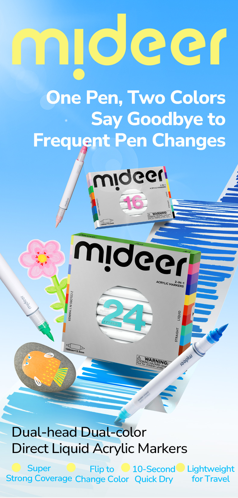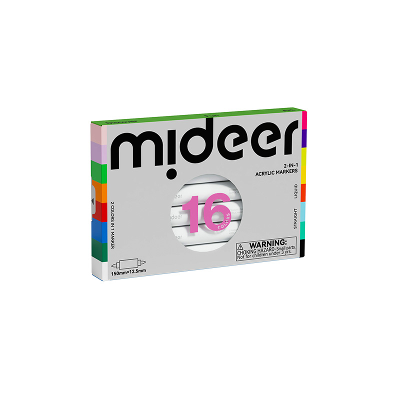 Markery akrylowe dwustronne 2w1 mideer – 16 kolorów
