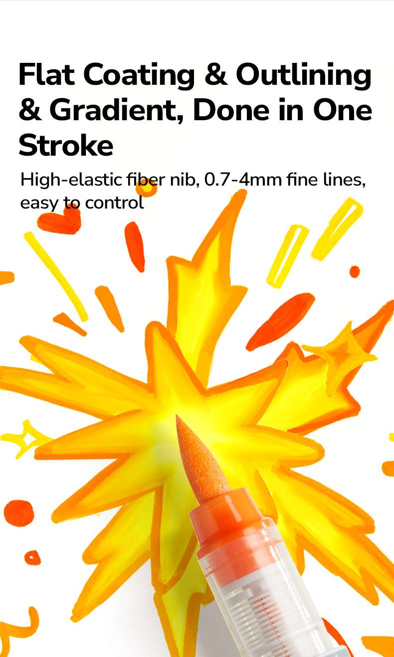 Dwustronne markery Mideer ułatwiają te wybory, bo każdy z nich łączy dwa odcienie. Wystarczy obrócić marker, by natychmiast sprawdzić inną barwę, bez odkładania narzędzia i przerywania pracy.