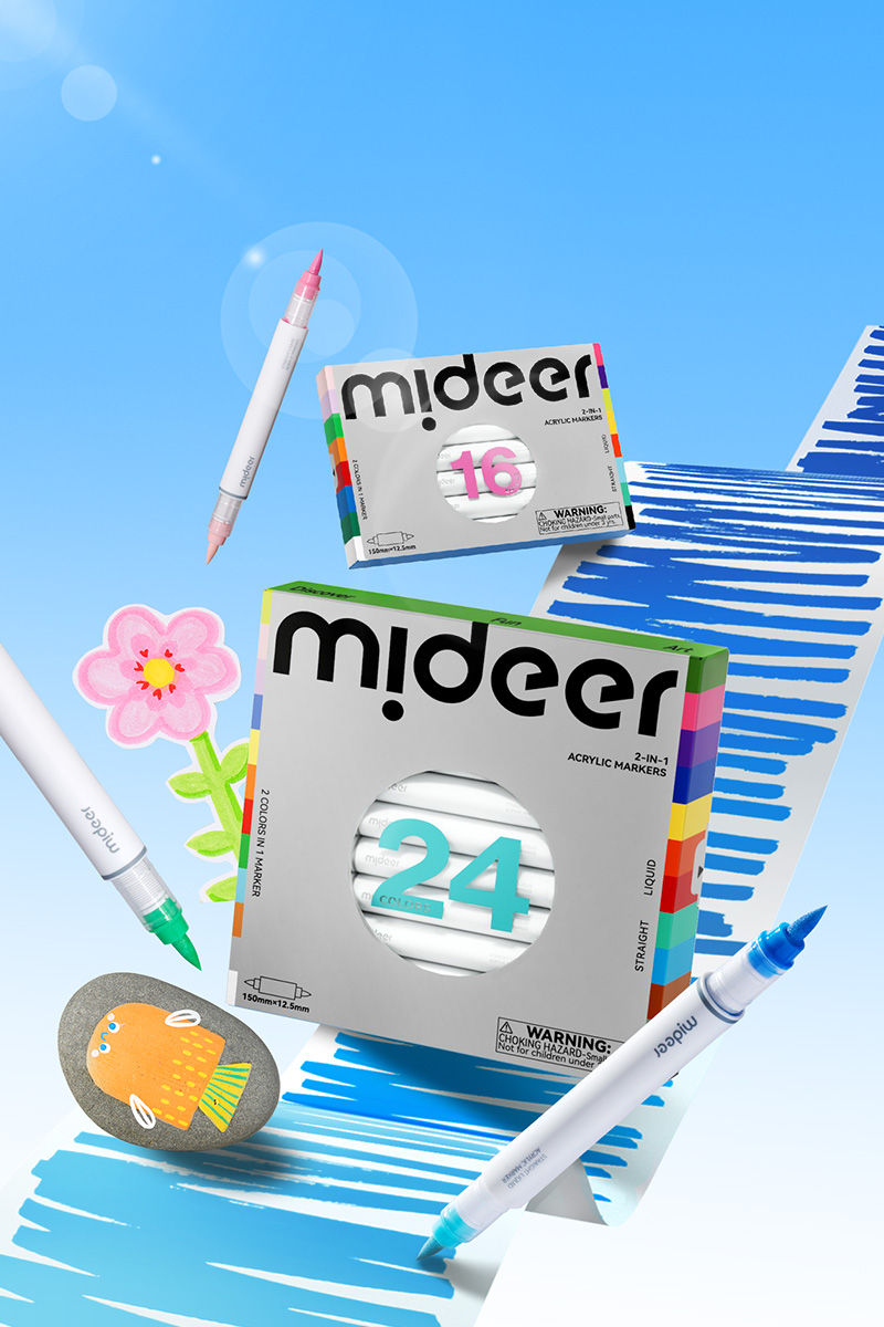Markery akrylowe dwustronne 2w1 mideer – 24 kolory