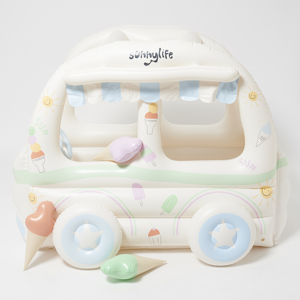 Wejdź do świata przygód z dmuchanym domkiem Summer Sundae! To idealna przestrzeń do zabawy zarówno w domu, jak i na świeżym powietrzu. Wyposażony w dmuchaną kierownicę, otwierany dach i okna oraz zestaw 3 nadmuchiwanych lodów, które dodają zabawie słodkiego klimatu.