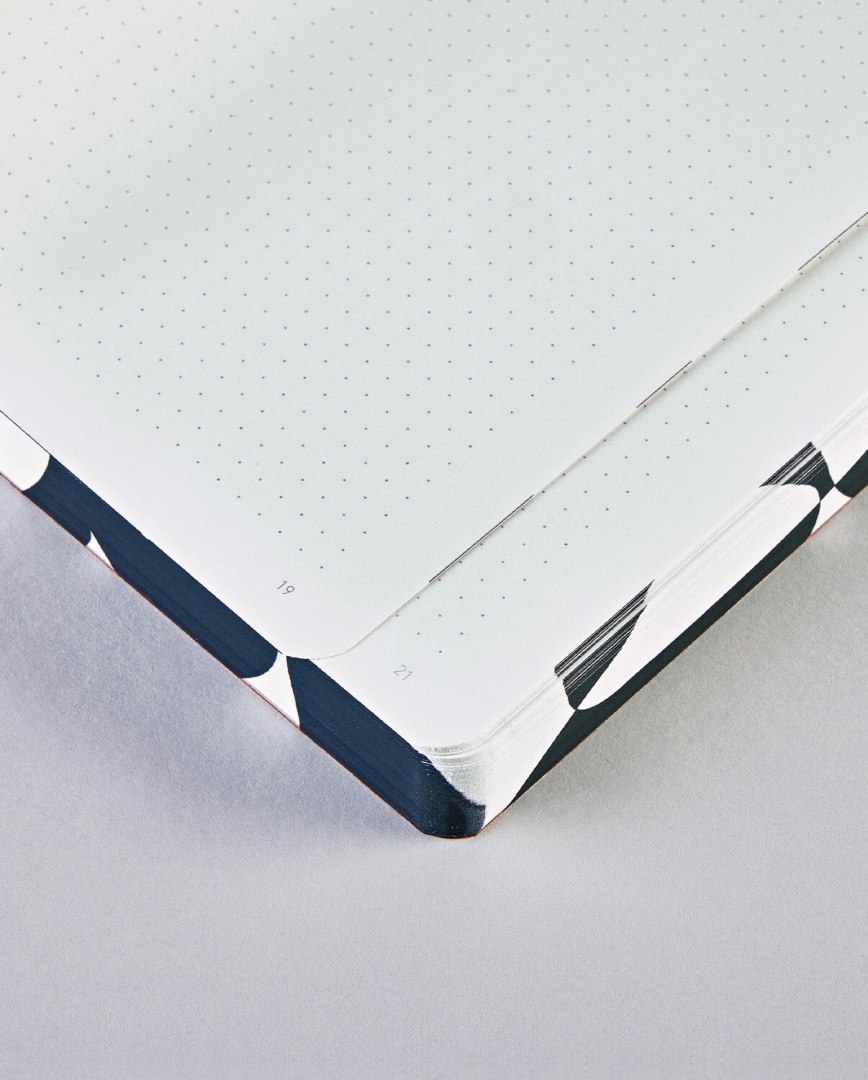 • Strony: 256 ponumerowanych stron z siatką szarych kropek o średnicy 3,5mm, dającą swobodę pisania, szkicowania i rysowanie.