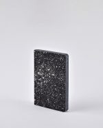 Czy może być coś bardziej inspirującego niż spojrzenie w gwiazdy? Wydrukowaliśmy to źródło inspiracji na notesie, abyś mógł podziwiać wszechświat w każdym miejscu i o każdej porze, dodając czaru wszystkim prostym momentem. Okładka, czarna jak noc, wykonana jest z recyklingowanej skóry z przyciemnionym srebrnym motywem