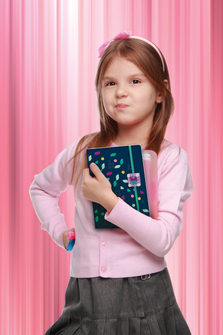Notatnik LEGO® Dots to wspaniały prezent zarówno dla dzieci, jak i dorosłych fanów marki. Dzięki dołączonej płytce LEGO® oraz zestawowi 18 drobnych klocków, notatnik można dowolnie spersonalizować lub wykorzystać klocki do zabawy podczas monotonnych zajęć lub dłużących się spotkań.  Notatnik LEGO® przed przypadkowym otwarciem zabezpiecza wygodna gumka, do której przymocowuje się dołączoną płytkę LEGO® z klockami do dekoracji.