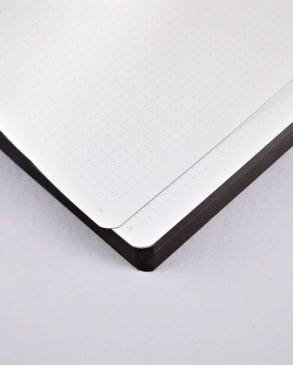 • Strony: 176 ponumerowanych stron z siatką szarych kropek o średnicy 3,5mm, dającą swobodę pisania, szkicowania i rysowania.