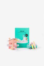 • Zawartość zestawu: 1 domek surferski, 1 van, 2 deski surfingowe, 1 boja