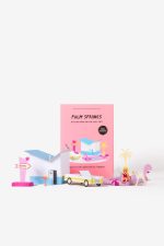 • Zawartość zestawu: 1 motel, 1 basen, 1 Cadillac, 1 palma, 1 znak, 2 materace, 1 piłka i 1 boja z flamingiem.