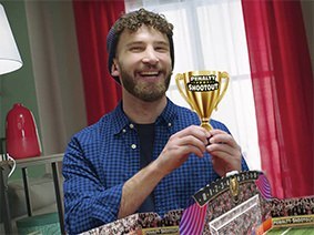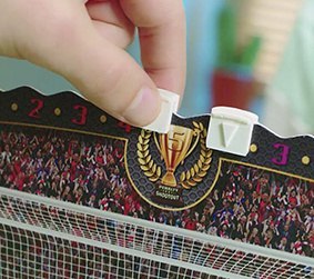 Daj się porwać emocjom i zwyciężaj dzięki rzutom karnym! Naciągnij gumkę i celuj do bramki przeciwnika. Gracz, który pierwszy przestrzeli wszystkie krążki – wygrywa rundę. Gol!!!