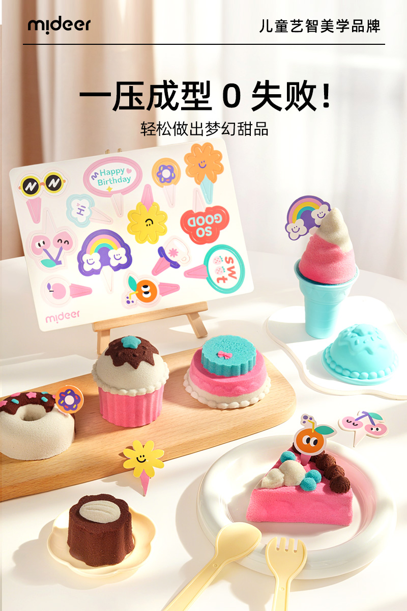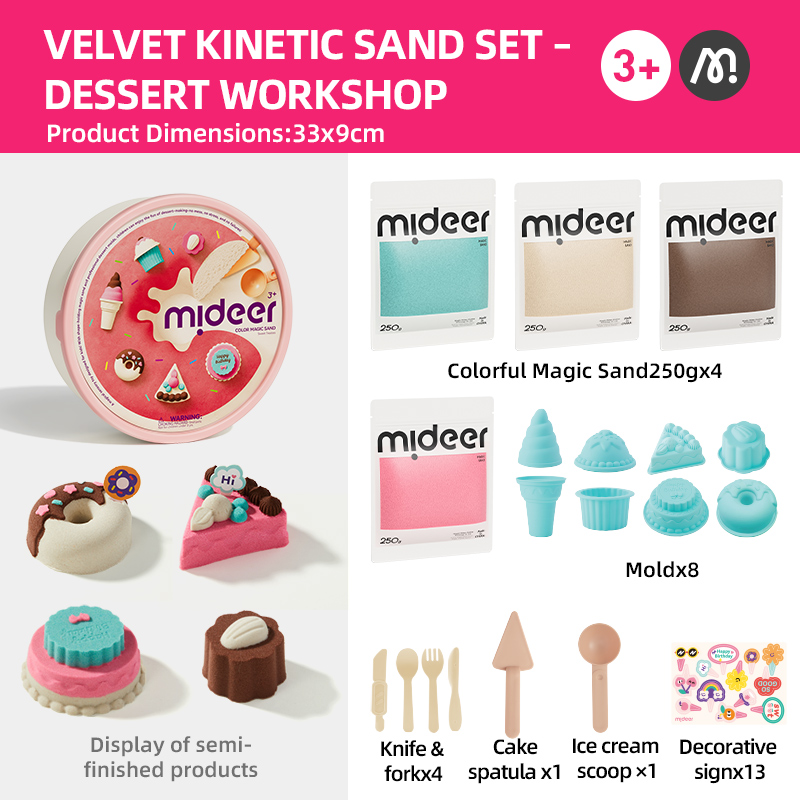Wystarczy otworzyć ten zestaw piasku magicznego Mideer, aby zwykły stolik zamienił się w małą cukiernię.