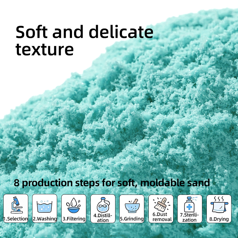 Miękki, plastyczny piasek łatwo poddaje się formowaniu, nie brudzi rąk i jest bezzapachowy. To swietna zabawka sensoryczna dla młodszych i starszych dzieci.