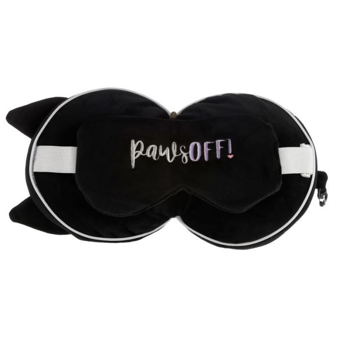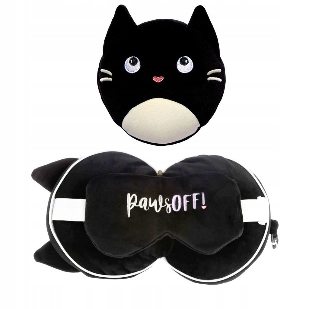 Pluszowa poduszka podróżna z opaską na oczy Relaxeazzz – Kot Feline Fine