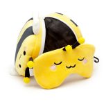 Pluszowa poduszka podróżna z opaską na oczy „Relaxeazzz” – Pszczółka