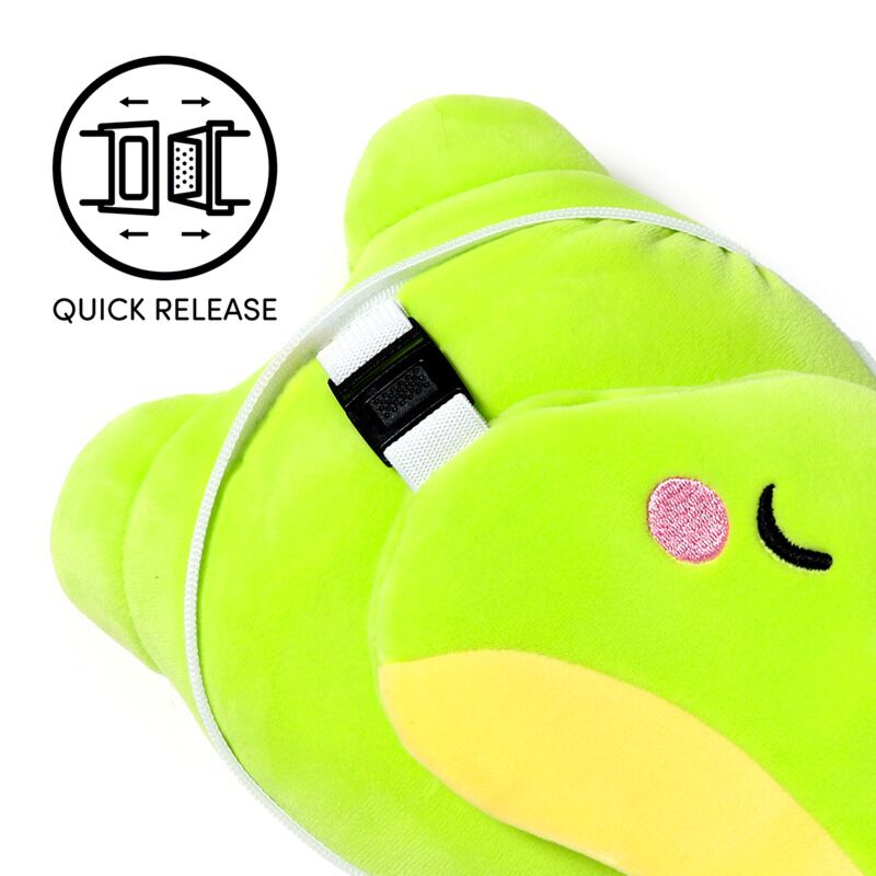 Pluszowa poduszka podróżna i maska na oczy Relaxeazzz – Silas the Frog to nie tylko praktyczne akcesorium, ale także uroczy towarzysz podróży w kształcie uśmiechniętej żabki, który spodoba się zarówno dzieciom, jak i dorosłym.