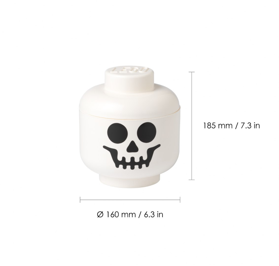 Strachy na lachy! Szkieletor LEGO® to pojemnik nie tylko na halloweenowe łupy i służy dzieciom przez cały rok. Można w nim schować przybory szkolne, zabawki, klocki LEGO® i inne skarby, o których wiedzą tylko najmłodsi.