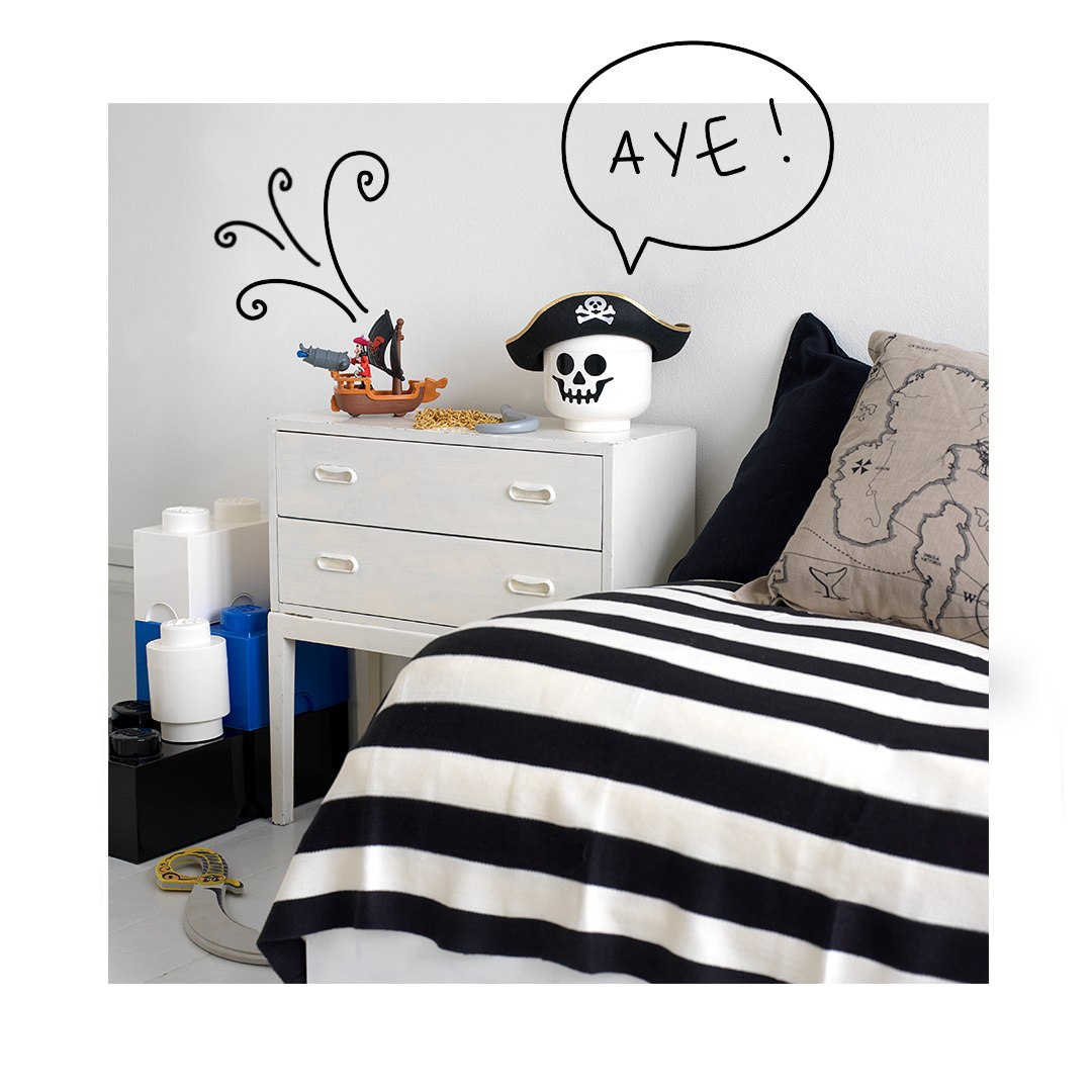 Głowa minifigurki LEGO® jako pojemnik, to radosny sposób na uporządkowanie dziecięcego pokoju.