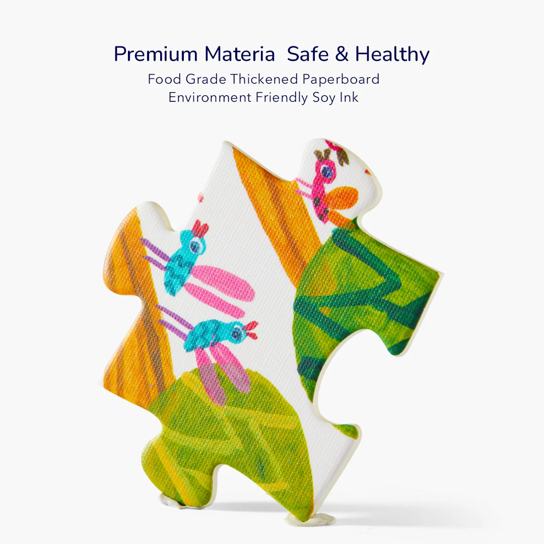 Puzzle artystyczne pokazują, że układanka nie musi przedstawiać motywów z telewizyjnych bajek, aby zainteresować dzieci. W najmłodszych tkwi wrażliwość i niezwykła ciekawość świata, które wręcz pchają je do poznawania nowych opowieści. Bogate i jaskrawe kolory szalonych grafik snują niesamowite historie warte poznania. Spędzając jakościowy czas na tworzeniu z dzieckiem pięknego obrazka Leśnego cudu, możemy nie tylko cieszyć się nawzajem swoją obecnością, ale i uczyć się cierpliwości i bycia tu i teraz. Dzięki uniwersalnym motywom oraz liczbie elementów puzzle uszczęśliwią również dorosłe dzieci. Do zestawu dołączony jest klej, dzięki któremu możemy utrwalić nasze dzieło i powiesić (je na przykład nad dziecięcym biurkiem), oraz przypinka nawiązująca do grafiki.