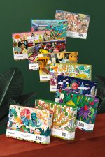 Dzieci, które od najmłodszych lat układały puzzle, nie zainteresują się banalnymi obrazkami. Dlatego warto proponować im układanki, które wyłamują się z utartych schematów i postawione pośród innych mogą zostać uznane nawet za… dziwne. Bogate i jaskrawe kolory szalonych grafik przyciągają wzrok i zachęcają do układania. Spędzając jakościowy czas na tworzeniu z dzieckiem pięknego obrazka Metropolis, możemy nie tylko cieszyć się nawzajem swoją obecnością, ale i uczyć się cierpliwości i bycia tu i teraz. Do zestawu dołączony jest klej, dzięki któremu możemy utrwalić nasze dzieło (i powiesić je na przykład nad dziecięcym biurkiem), oraz przypinka nawiązująca do grafiki.
