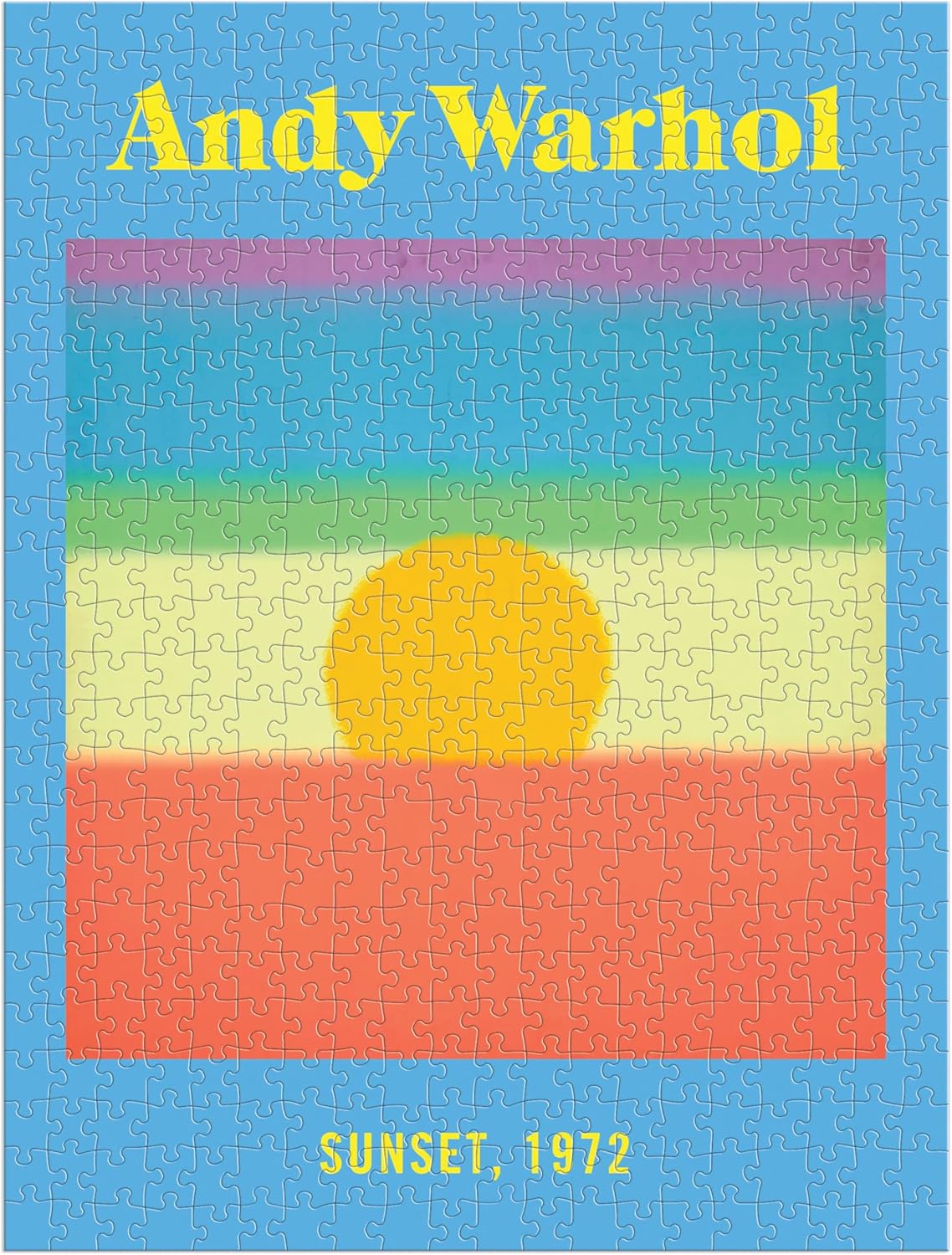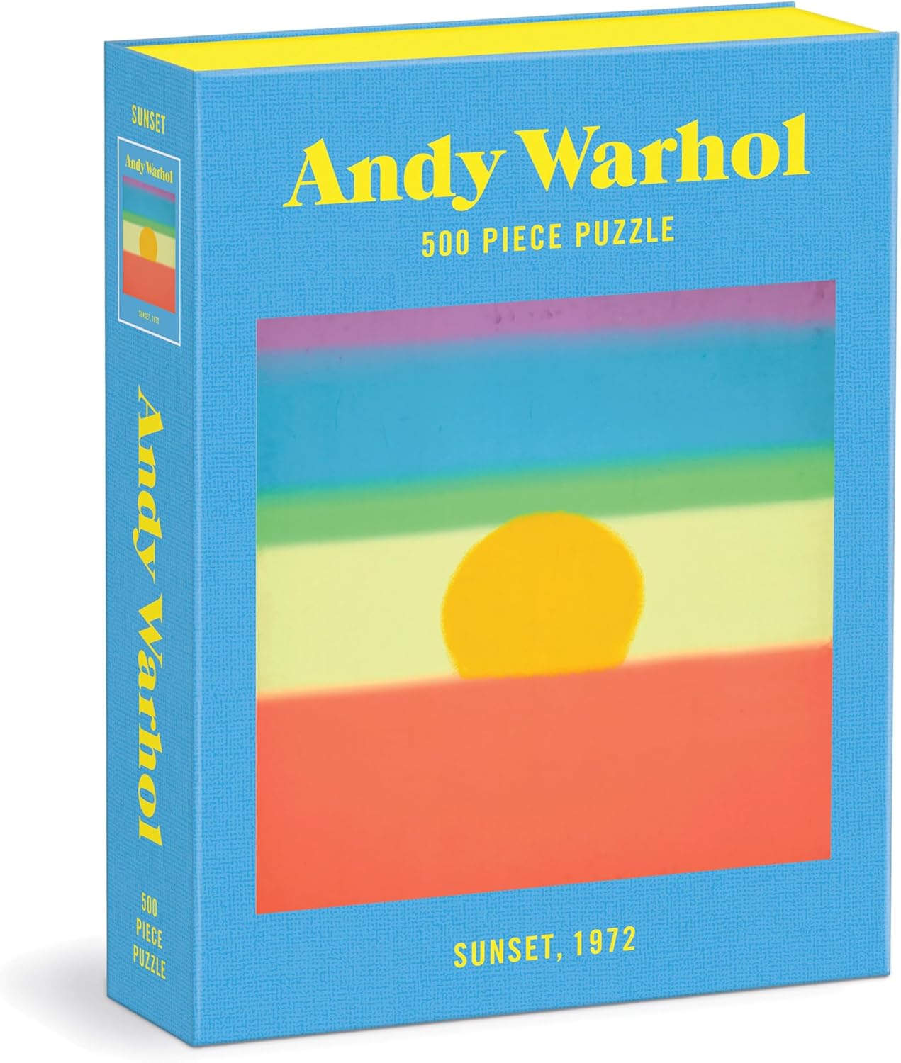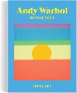 Zestaw Andy Warhol Sunset 500 Piece Book Puzzle zawiera słynny projekt zachodu słońca autorstwa Warhola oraz magnetyczne pudełko na pamiątki, które świetnie prezentuje się na półce z książkami lub stoliku kawowym. To idealny prezent zarówno dla miłośników Andy’ego Warhola, jak i układania puzzli!