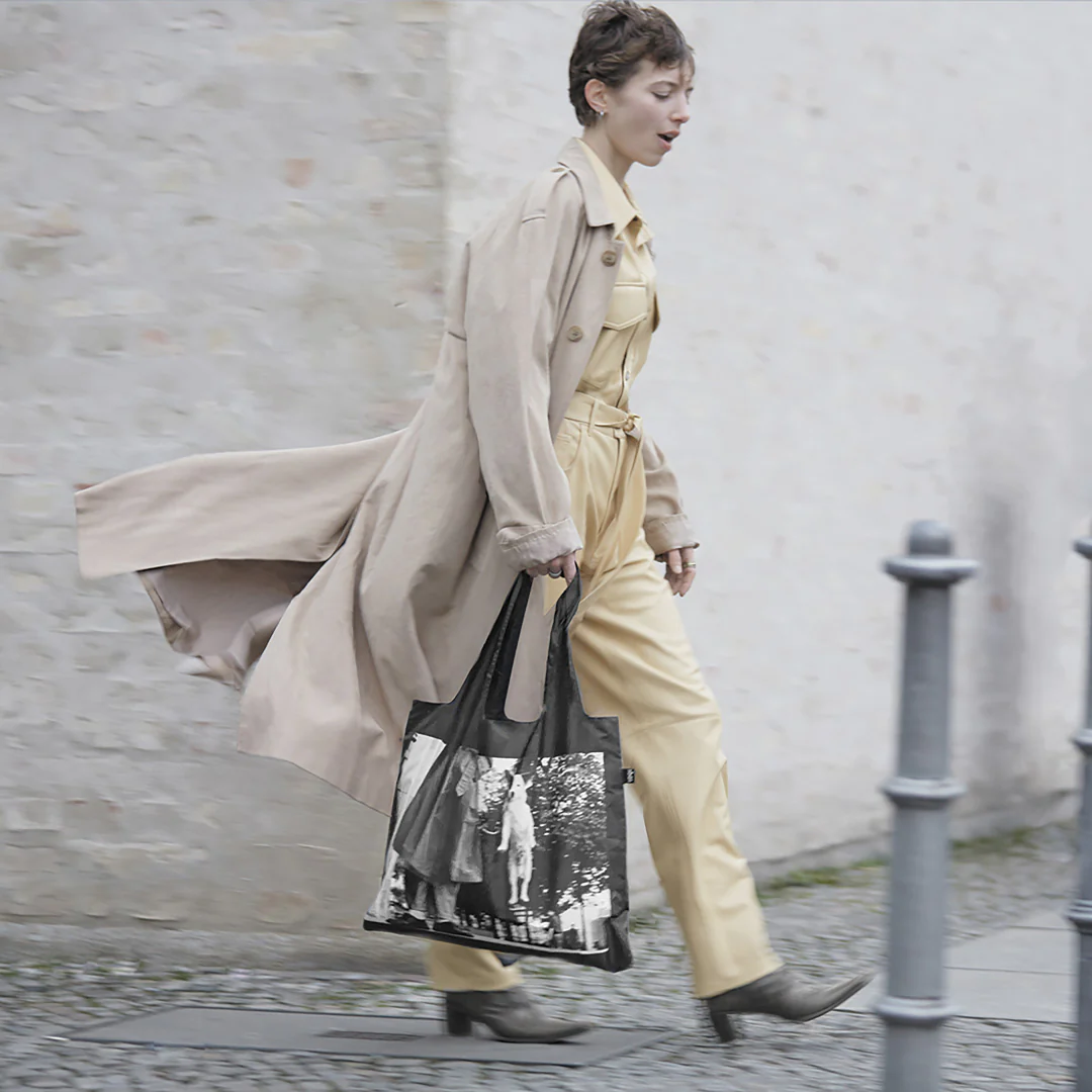 Wprowadź do swojego życia odrobinę humoru i energii z torbą podręczną Dog Jumping od Elliotta Erwitta. Artysta był orędownikiem spontanicznej fotografii. Znany ze swoich szczerych portretów psów, powiedział: „Można znaleźć zdjęcia wszędzie. To po prostu kwestia zauważania rzeczy”.