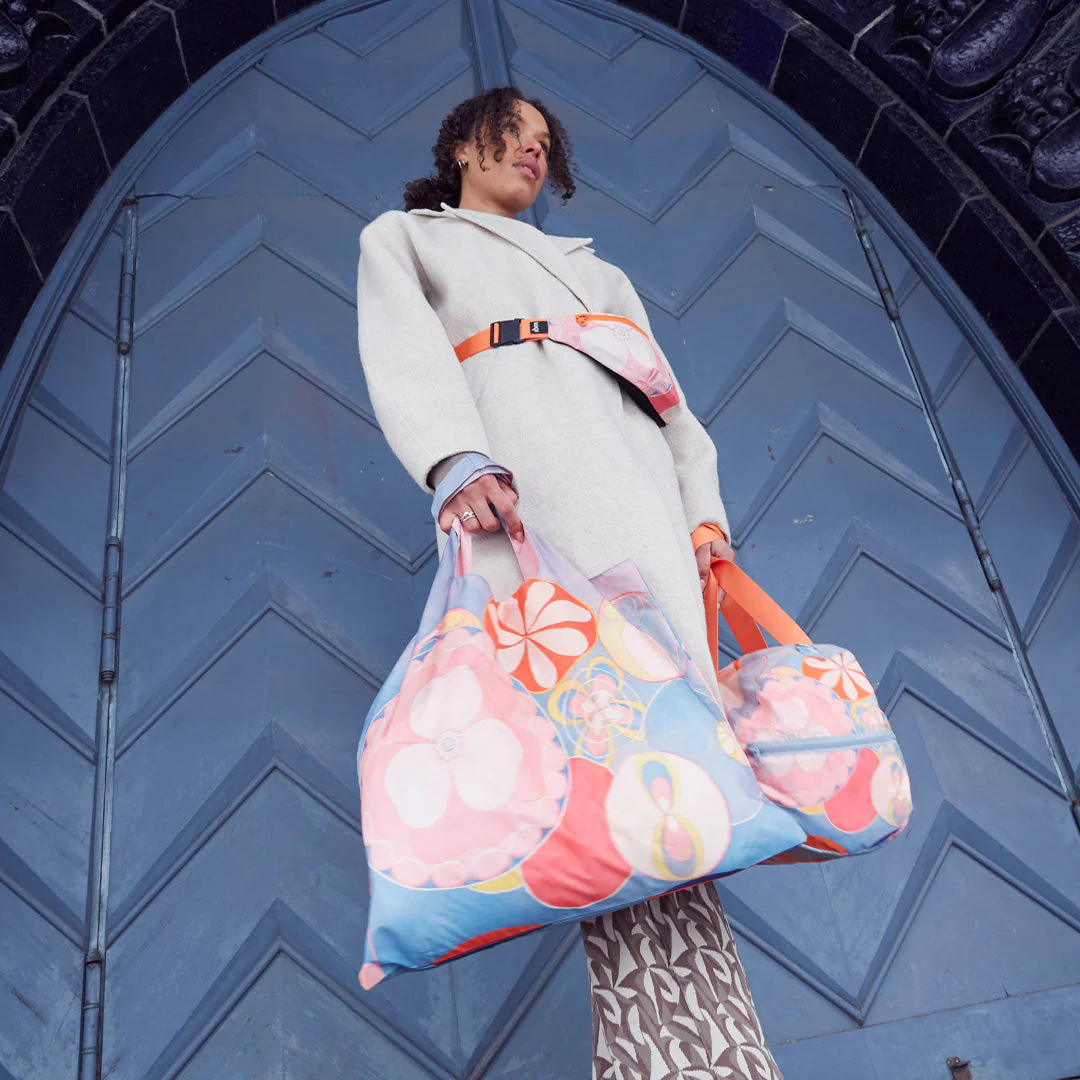 Wspaniała torba w odcieniach od przydymionych pomarańczy po delikatne róże i lawendy. Jej abstrakcyjne okręgi, spirale i wstążki oddają jej pionierską pracę  artystki z 1906 roku. Odważny styl Af Klint pojawił się przed podobnymi ruchami Kandinsky’ego, Malewicza i Mondriana