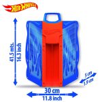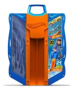 Zaskocz swojego małego fana Hot Wheels® tą praktyczną i emocjonującą walizką z torem wyścigowym.