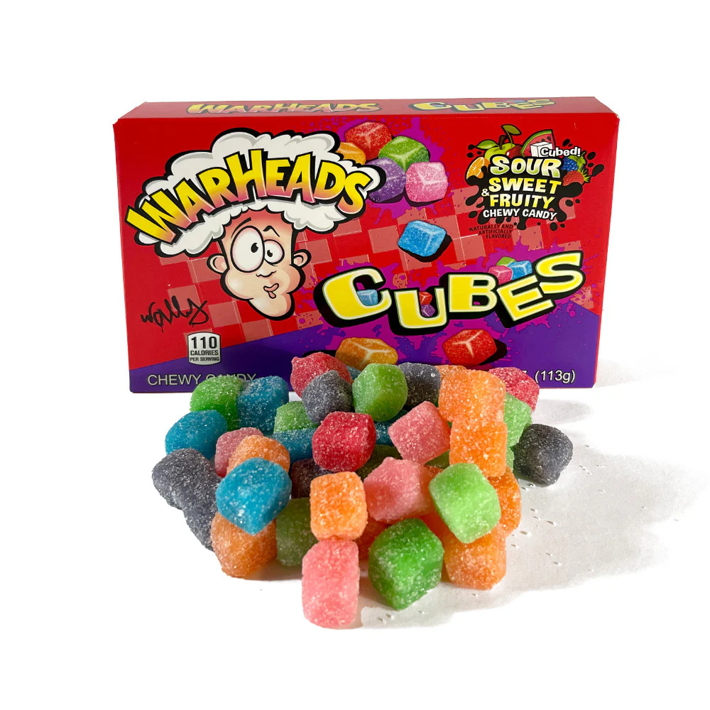 Odkryj wyjątkowy smak kostek Warheads. Te rewelacyjne kolorowe miękkie żelki zaskakują eksplozją smaku, jakiej nigdy wcześniej nie doświadczyłeś. Każdy kęs odkrywa nowy smak. Zacznij od orzeźwiającej pomarańczy, zanurz się w słodkim arbuzie, daj się zaskoczyć egzotycznej niebieskiej malinie, poczuj głębię czarnej wiśni, delektuj się klasyczną truskawką i zakończ swoją smakową podróż chrupiącym zielonym jabłkiem.
