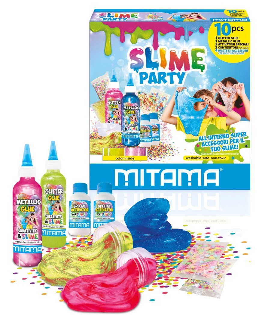 Zestaw zawiera 1 pojemnik kleju SLIME o pojemności 180 ml oraz 1 pojemnik aktywatora o pojemności 68 ml. To wszystko, czego potrzebujesz, aby stworzyć niezwykłe kolorowe kreatury i zanurzyć się w fascynującym świecie slime’u