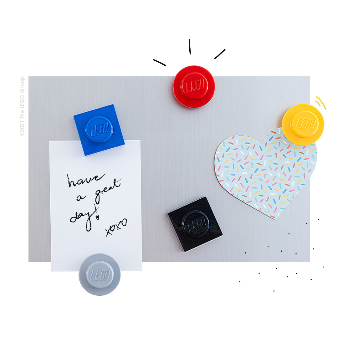 Magnesy w kształcie klocków LEGO® do przymocowania ulubionych rysunków lub ważnych notek przykuwają wzrok i wywołują uśmiech. Idealny gadżet zarówno dla dzieci, jak i dorosłych fanów LEGO®, którym przyda się czasem wesoła przypominajka na lodówce.