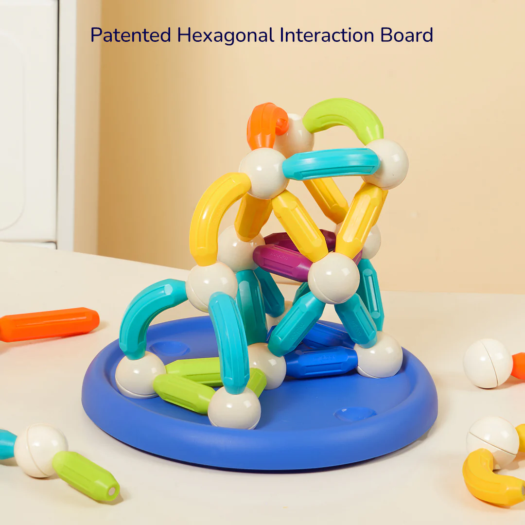 Konstruowanie nowych kształtów nigdy nie było tak przyjemne. Magnetyczne pałeczki to świetna zabawka dla każdego malucha zafascynowanego nie tylko tworzeniem, ale i zasadami funkcjonowania fizyki. Pałeczki mają bieguny dodatnie i ujemne, co sprawia, że najmłodsi muszą podejść do budowania w zupełnie nowy sposób, rozwijając przy tym umiejętność rozwiązywania problemów oraz świadomość przestrzenną. Dla początkujących do zestawu dołączona jest instrukcja, pokazująca przykładowe konstrukcje. Pewni siebie konstruktorzy mogą śmiało tworzyć wszystko, wedle własnego uznania.